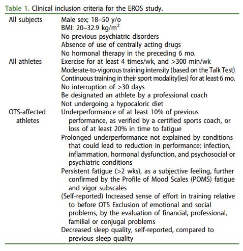 For instance, one of his pivotal works was the EROS study7. EROS stands for the Endocrine and Metabolic Responses on Overtraining Syndrome. It’s a bit of a mouthful, but in this post-hoc study, which utilized findings and measures from various portions of the EROS study, Cadegiani, et. al. looked at biomarkers for people who show symptoms of overtraining (OTS- overtraining syndrome) and compared them to “healthy” athletes (ATL) and non-physically active controls (NPAC).